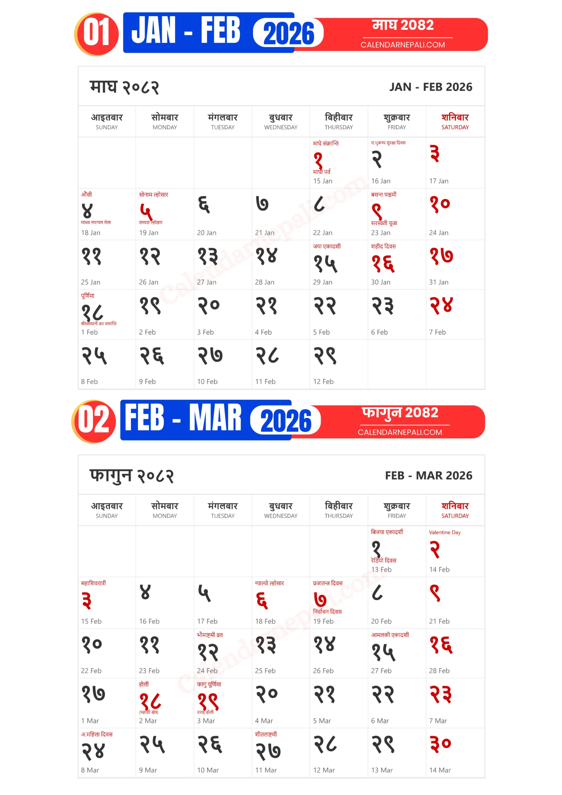 Magh 2026 Nepali Calendar